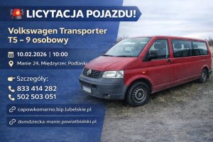Centrum Administracyjne Placówek Opiekuńczo-Wychowawczych w Maniach informuje o ogłoszeniu I ustnej licytacji na sprzedaż samochodu stanowiącego własność Powiatu Bialskiego:
